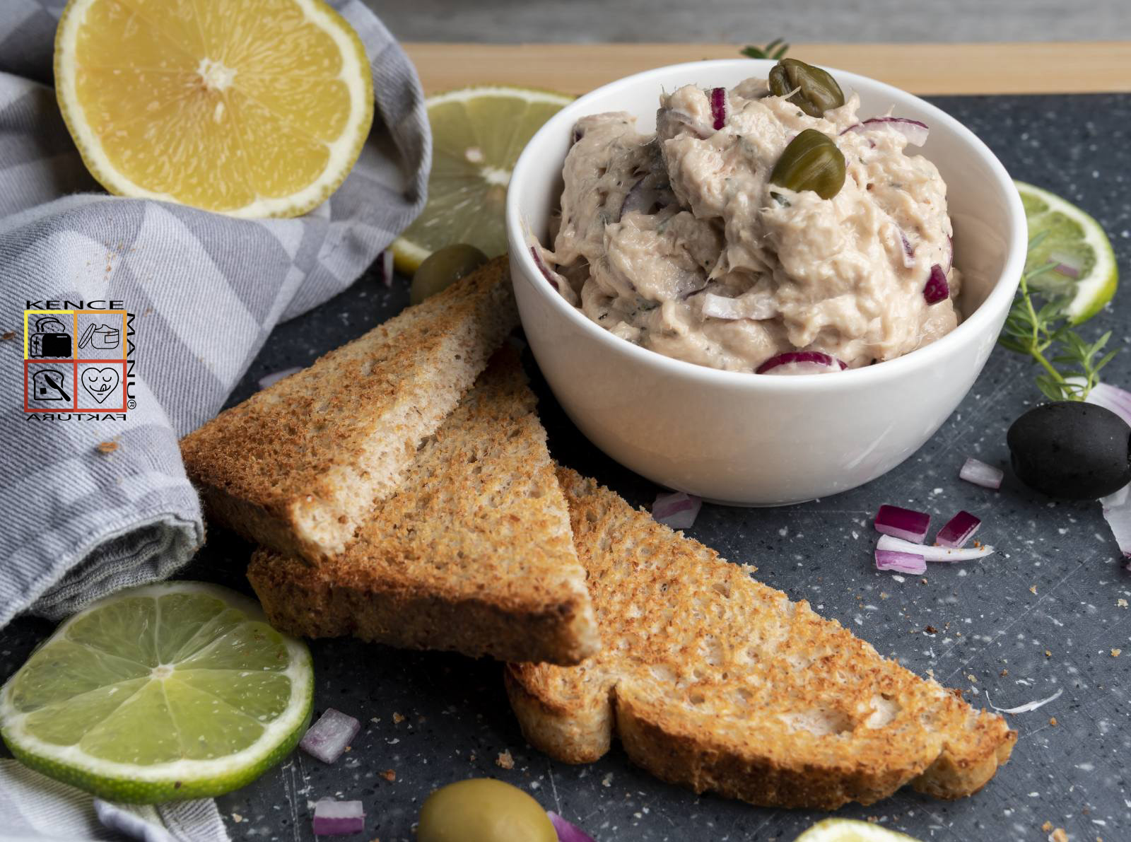 Tonhal törzsek extra szűz olivaolaj, citromlé, házi majonéz, szeletelt lilahagyma, kapribogyó és fűszerek hozzáadásával. Ajánljuk pirítóshoz vagy friss, ropogós pékáruhoz, de felhasználható mediterrán tészták ízesítéséhez is. Igazi tengerparti élmény !